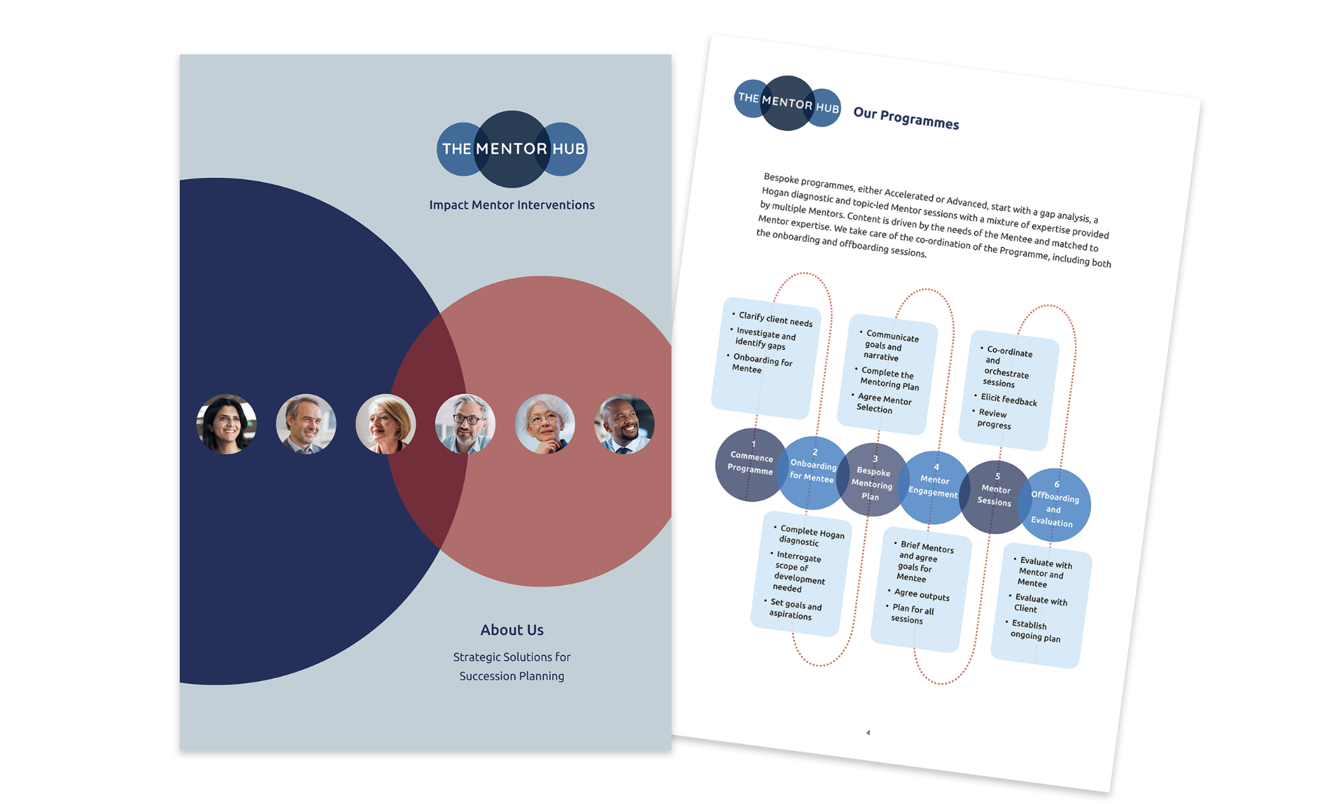 Logo and branding for The Mentor Hub: A unique multi-mentor platform that identifies individual skill gaps, curates bespoke development journeys, and matches individuals with tailored groups of mentors, ensuring that leaders are well-equipped to succeed.